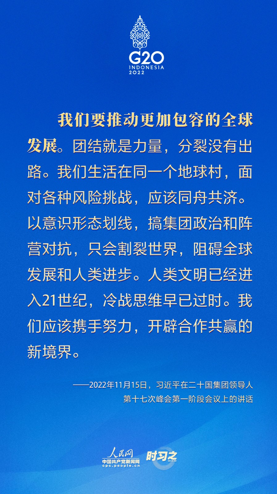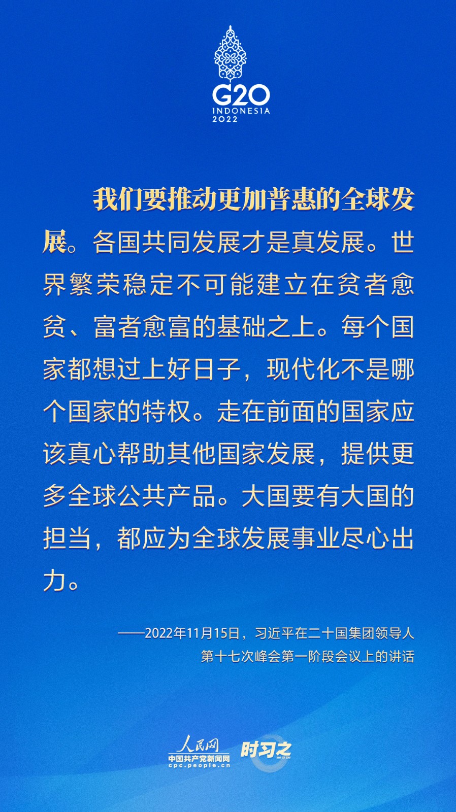 當(dāng)?shù)貢r間11月15日,二十國集團領(lǐng)導(dǎo)人第十七次峰會在印度尼西亞巴厘島舉行。國家主席習(xí)近平出席并發(fā)表題為《共迎時代挑戰(zhàn) 共建美好未來》的重要講話。